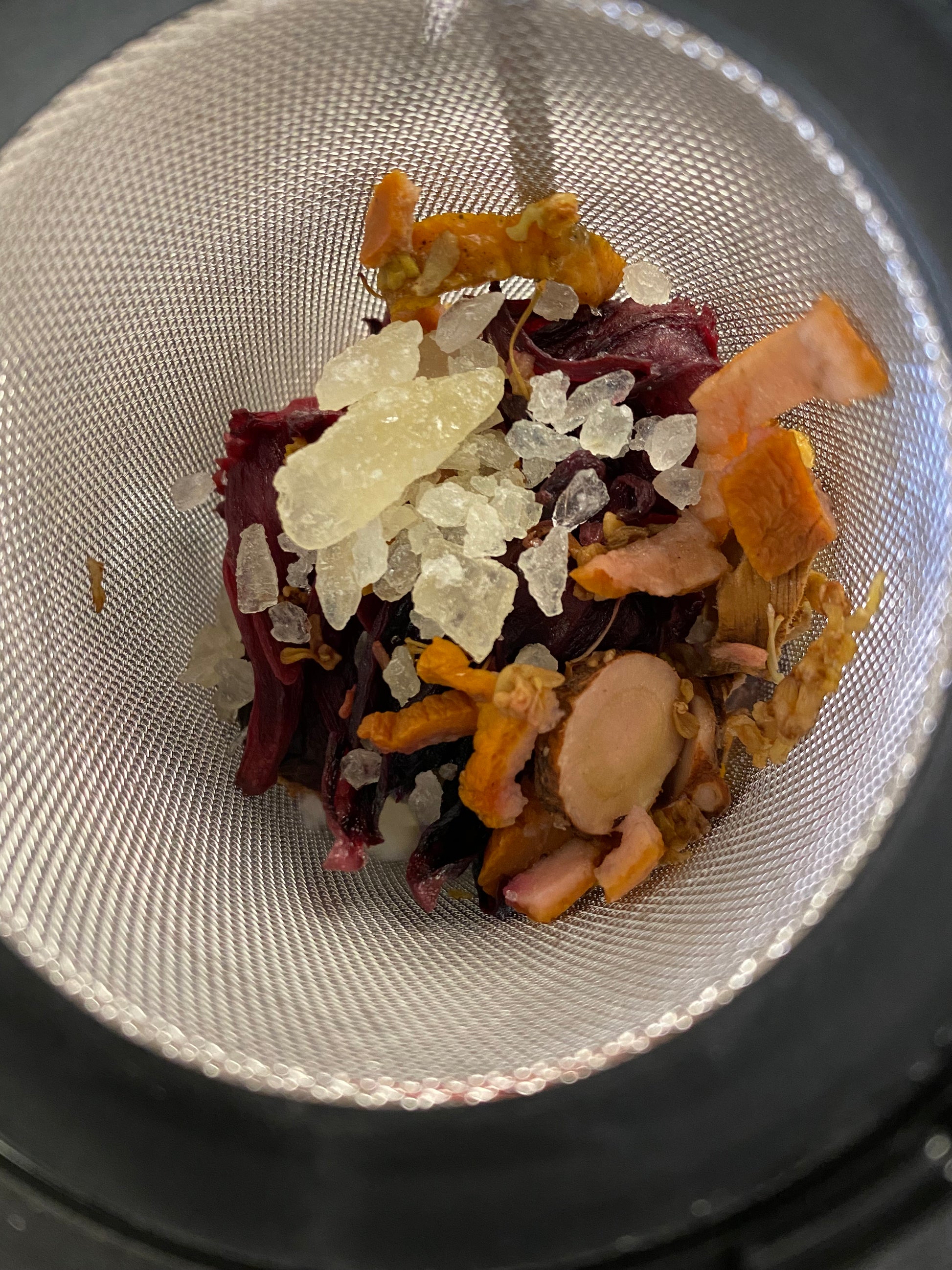 Ingredients: Roselle, black plum, hawthorn, licorice, dried tangerine peel, guihua (osmanthus), and rock sugar.