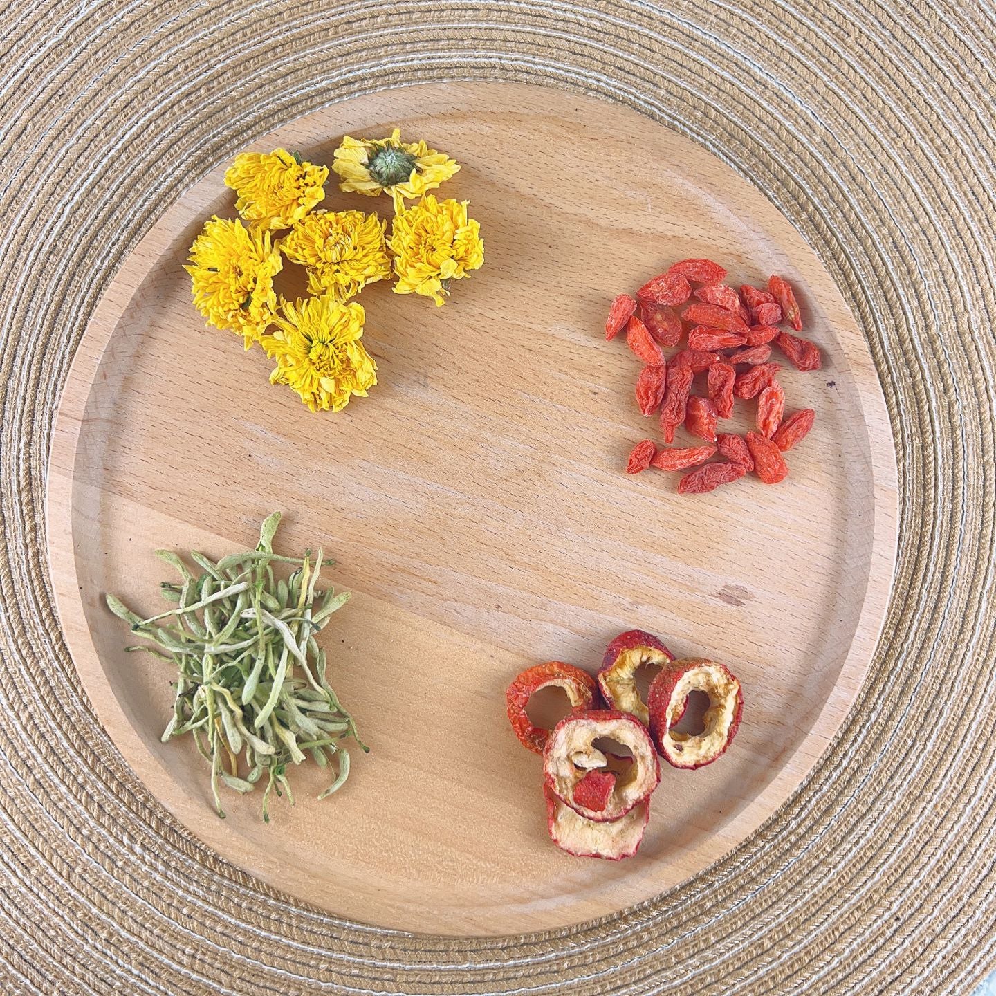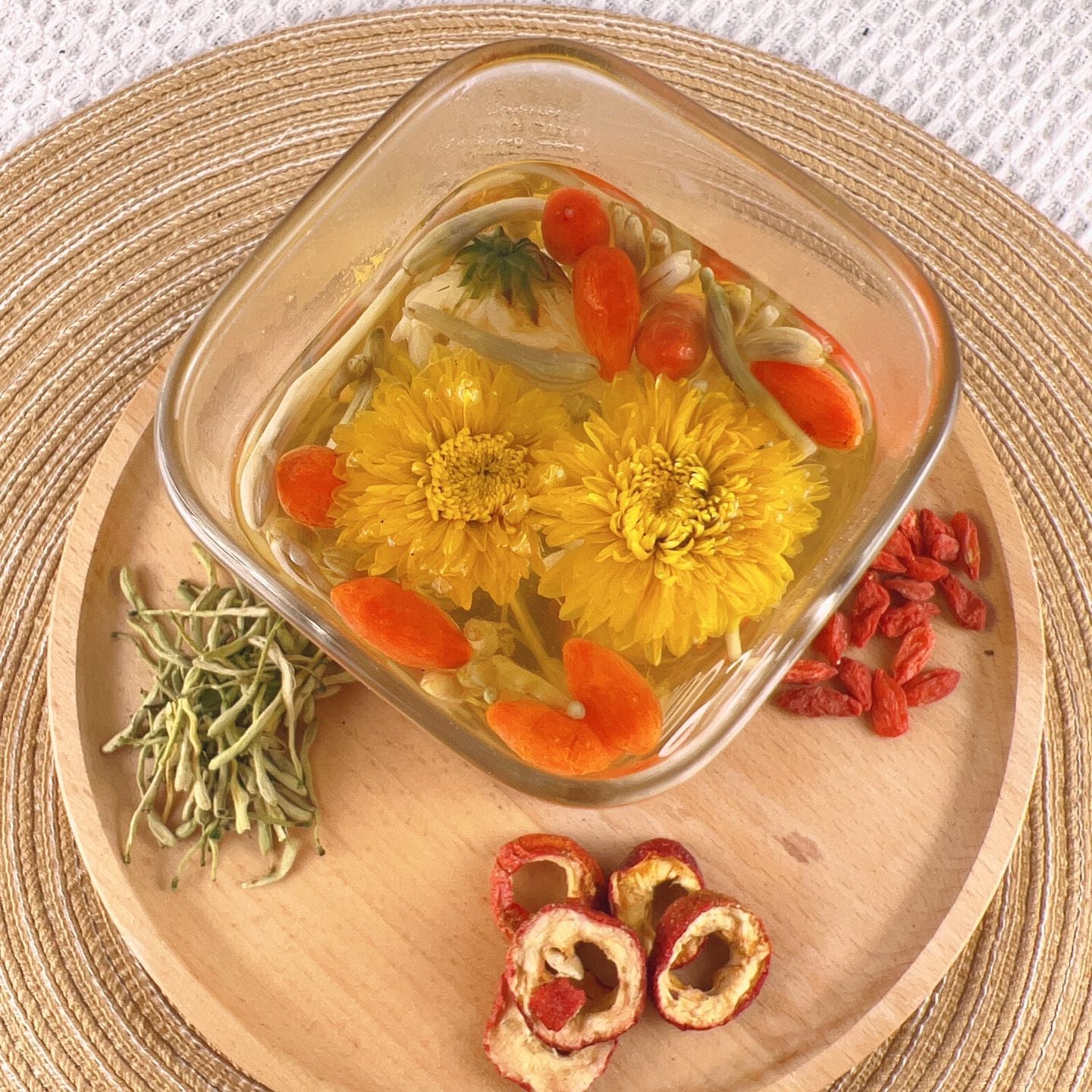 Ingredients: Honeysuckle Flower, Chrysanthemum Flower, Hawthorn Berry, Goji Berries
